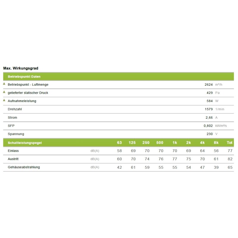 -Schalldruckpegel in 3m (20m² Sabin): 57,8dB(A)