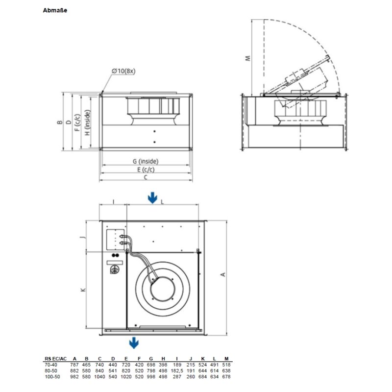 Die Ventilatoren der Reihe RS/RSI-EC sind mit rückwärts gekrümmten Laufradschaufeln und energiesparenden, hocheffizienten ECAußenläufermotoren ausgestattet. Motoren und Lüfterräder sind am Deckel montiert, um Reinigung, sowie Wartung zu vereinfachen. Die Ventilatoren sind mit einem Potentiometer(0-10V) ausgestattet, über das der Betriebspunkt direkt eingestellt werden kann. Das Gehäuse besteht aus verzinktem Stahlblech. Um den Motor vor Überhitzung zu schützen, verfügt der Ventilator über einen eingebauten Motorschutz. Die Ventilatoren können in jeder Einbaulage installiert werden. Mit den als Zubehör erhältlichen flexiblen Verbindungen kann der Ventilator einfach und vibrationsfrei im Kanalnetz montiert werden.