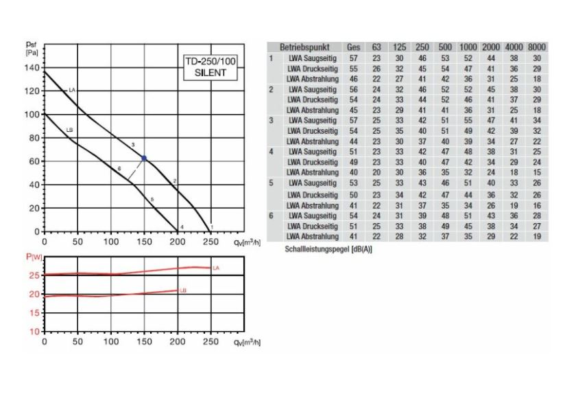 -Schalldruck in 3m: 28 / 25 / 23dB(A)