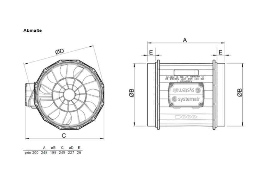 Der prioAir ist nicht nur energiesparend, er spart Platz beim Einbau durch sein geradliniges Gehäuse. Die Montage ist zeitsparend und sehr einfach. Der prioAir verfügt über 25mm lange Rohranschlüsse nach EN1506:1997. Mit einem stufenlosen Thyristor oder einem 5-stufigen Transformator kann der Ventilator drehzahlgesteuert werden.