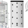 - Ausstattung: zwei Schichtleitkanäle, integrierter Trinkwassererwärmer alsEdelstahlwellrohrsystem 5 m2 (8 m² Heizfläche auf Anfrage möglich),Fühlerklemmleiste, ab 800 Liter mit E-Heizungsoption (Rp 1 ½“)